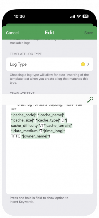 I regularly use Cachly to edit logs via the macOS iPhone Mirroring app, as I find Cachly's interface nicer than geocaching.com Since Cachly 8.1, the formatting of the log window has gotten a lot harder to use — see attached, where the divider line is most of the way up the screen. Currently on Cachly 8.1.1, iOS 26.2, iPhone Mirroring 1.5 / macOS 26. Thanks!