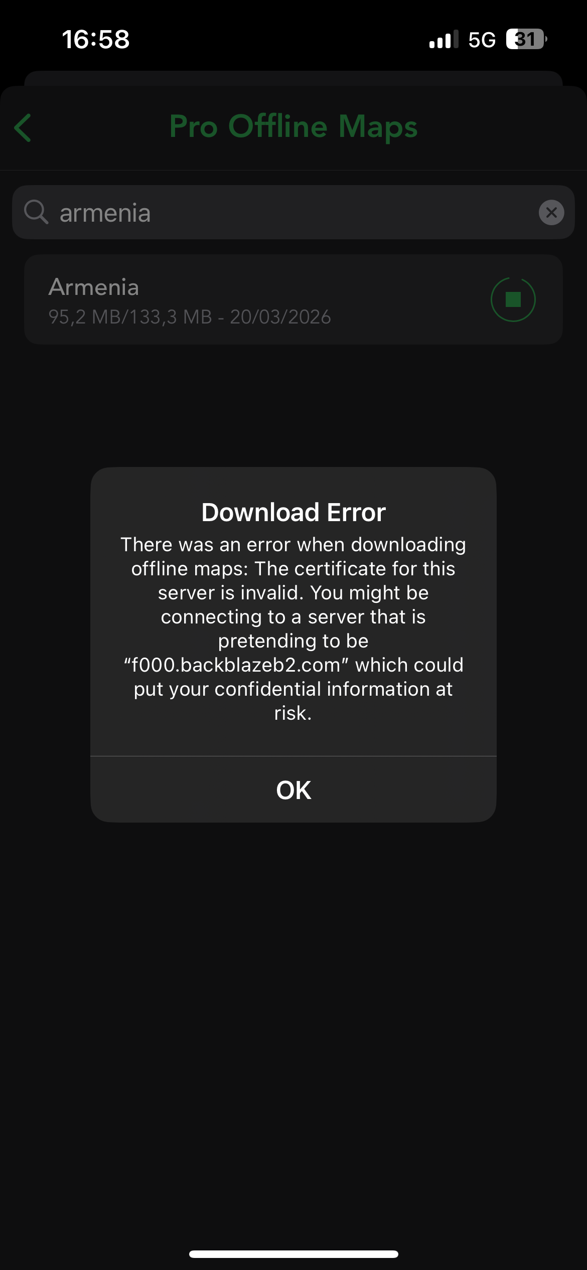 Flux Posted March 31 Report Share Posted March 31 I am unable to download an offline map apparently due to some sort of server error. I attached a screenshot of the pop-up that appears when I attempt to download a map below. Quote Link to comment Share on other sites More sharing options...